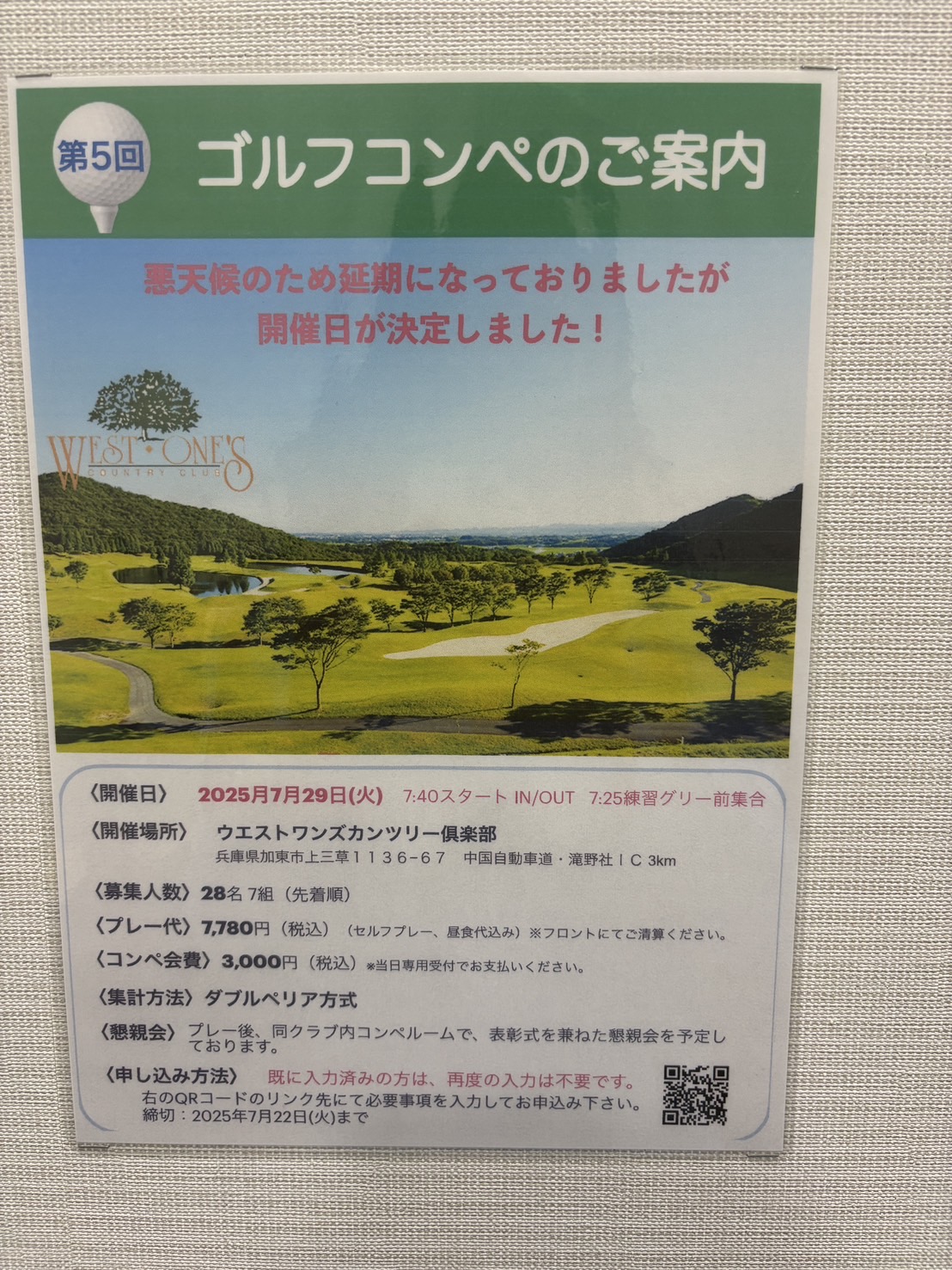 【開催場所】ウエストワンズカンツリー倶楽部