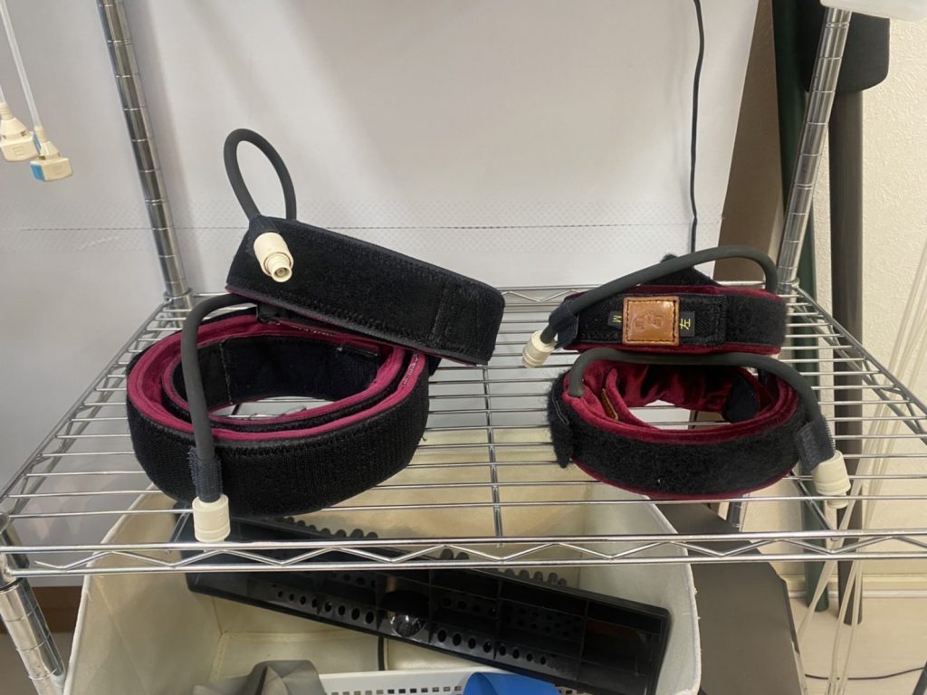 加圧トレーニングの仕組みは、腕や脚の付け根に専用のベルトを巻き、血流を適度に制限した状態でトレーニングを行います。血流制限により、筋肉は軽い負荷でも高強度のトレーニングをしたと錯覚します。その結果、大量の成長ホルモンが分泌されるのです。